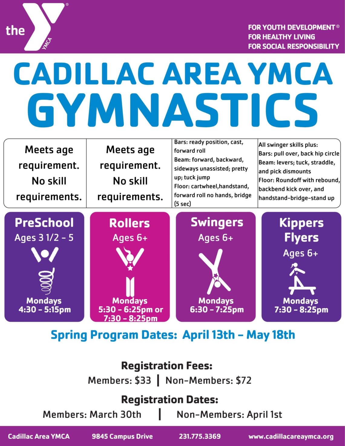 Spring registration begins Monday, March 30 for Y Members and Wednesday, April 1 for Community Members.