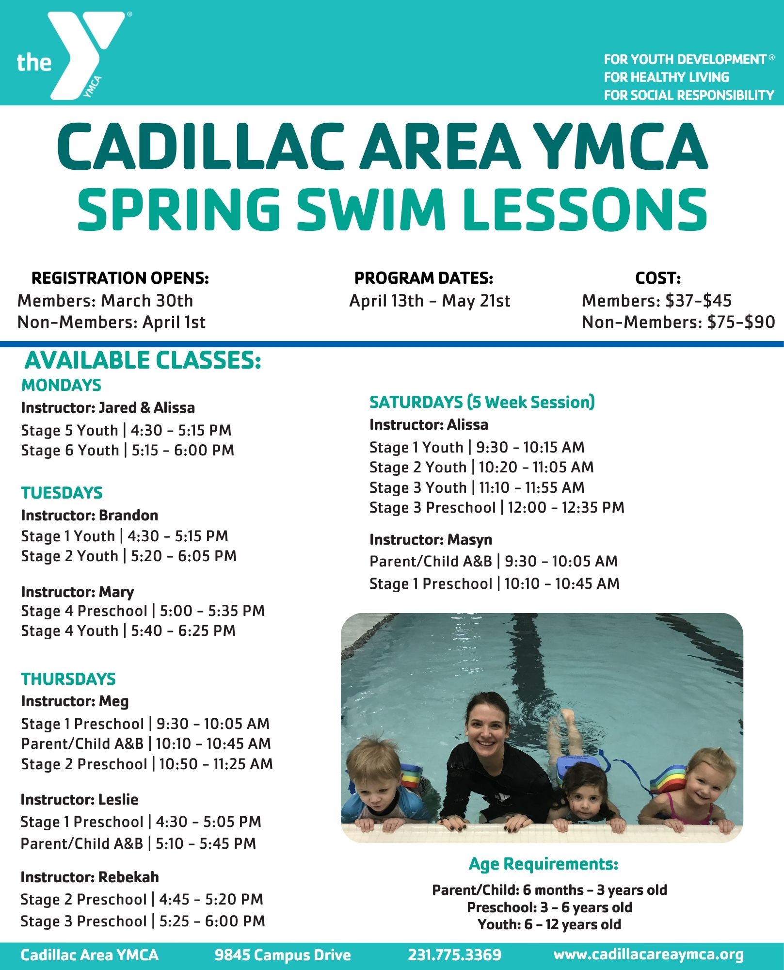 **Please pay close attention to the start date of your class when you register. Some classes start on different weeks.